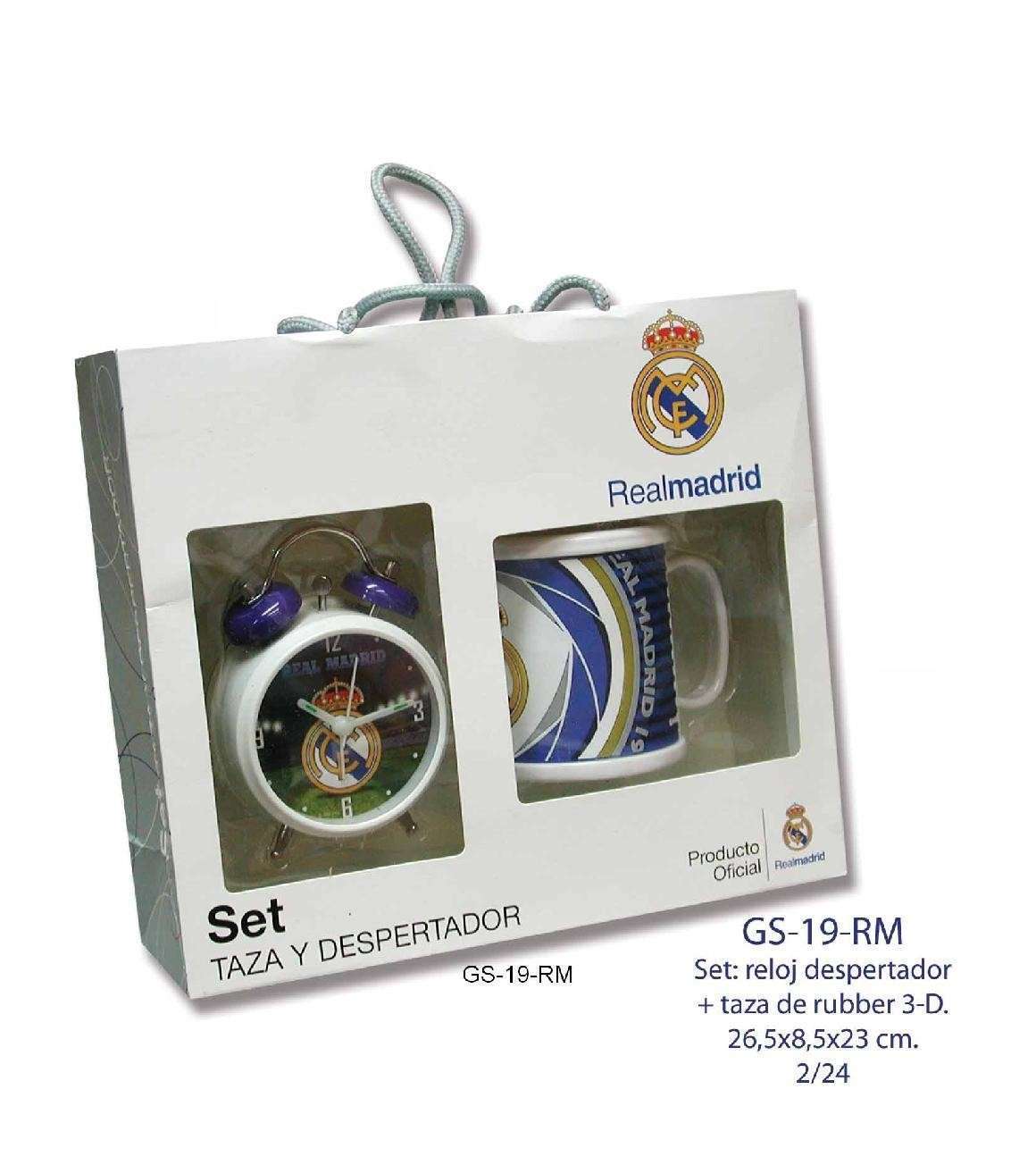 Estupendo regalo para cualquier ocasión del Real Madrid. Este producto oficial, consta de un reloj despertador de 12x9x4 cm. y de una taza.